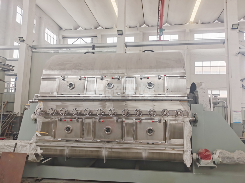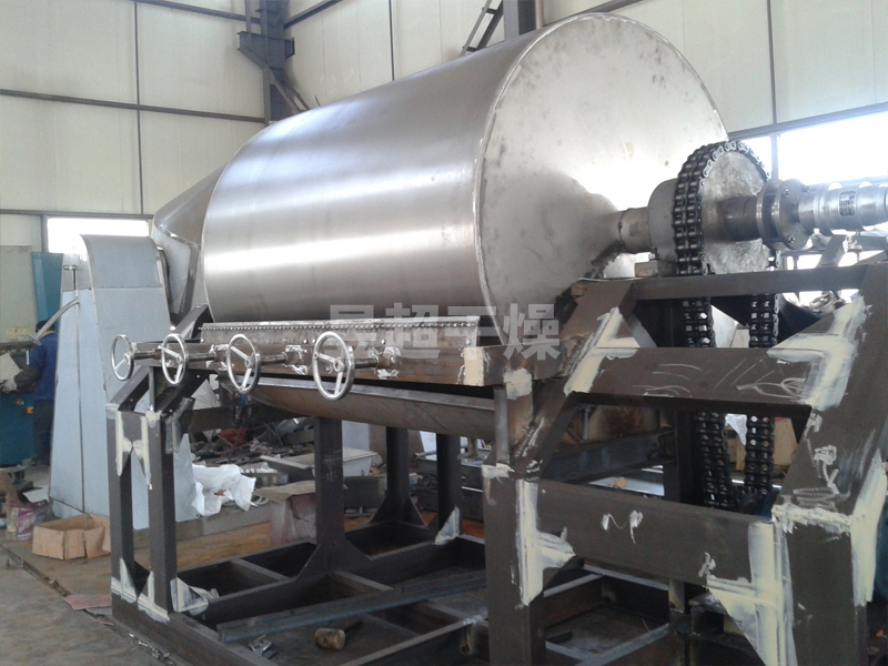 3、干燥时间短。物料的干燥周期一般只有10-300秒,适合于热敏性物料。若将滚筒干燥机设置在真空器中,则可在减压条件下运行。