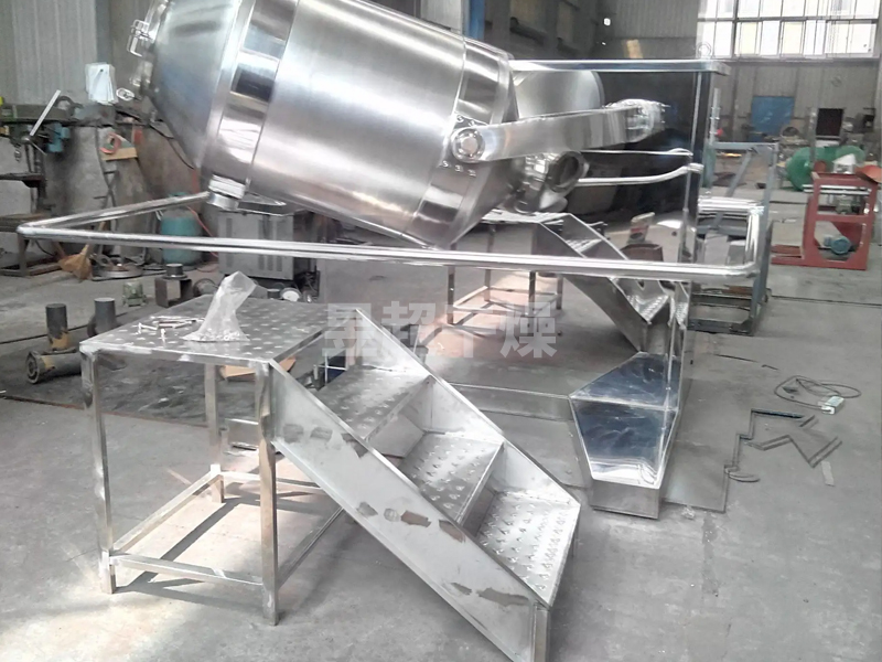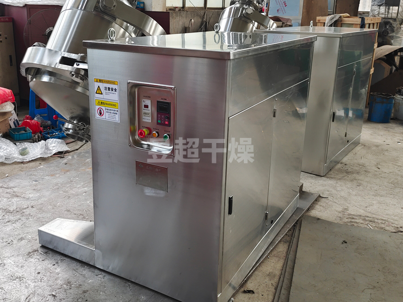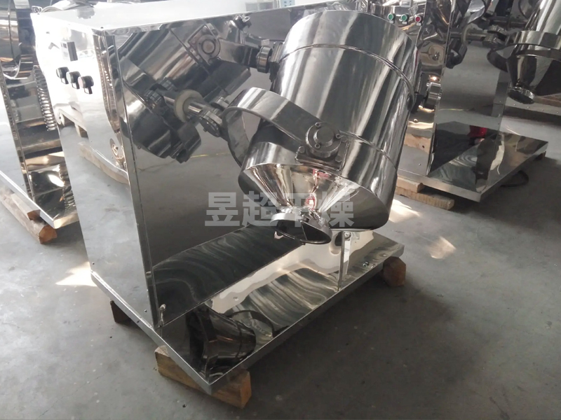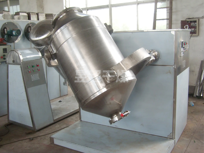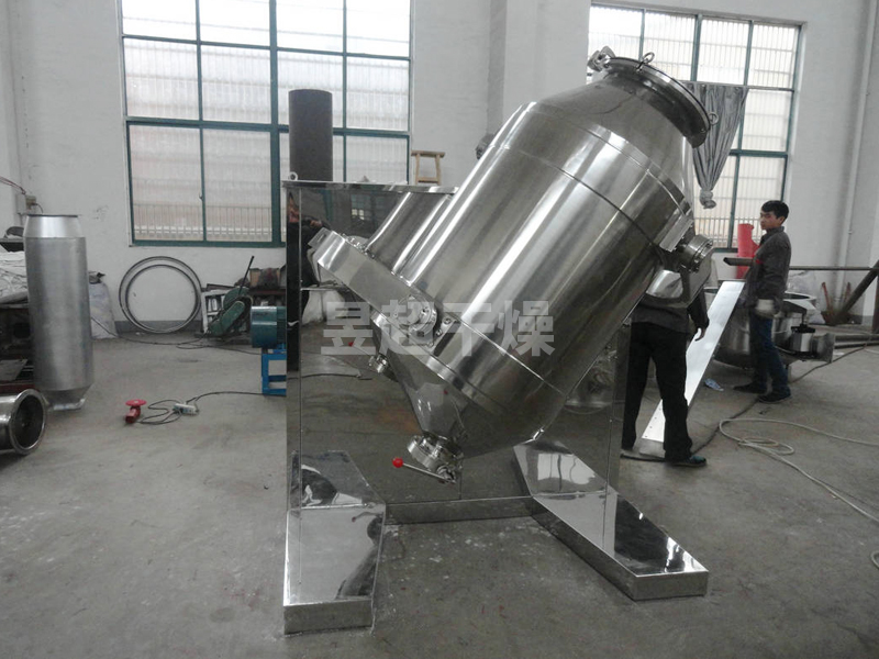 结构:该机由机座、传动系统、电器控制系统、多向运动机构、混合筒等部件组成。与物料直接接触的混合筒采用不锈钢材料制造,桶体内外壁均经镜面抛光。