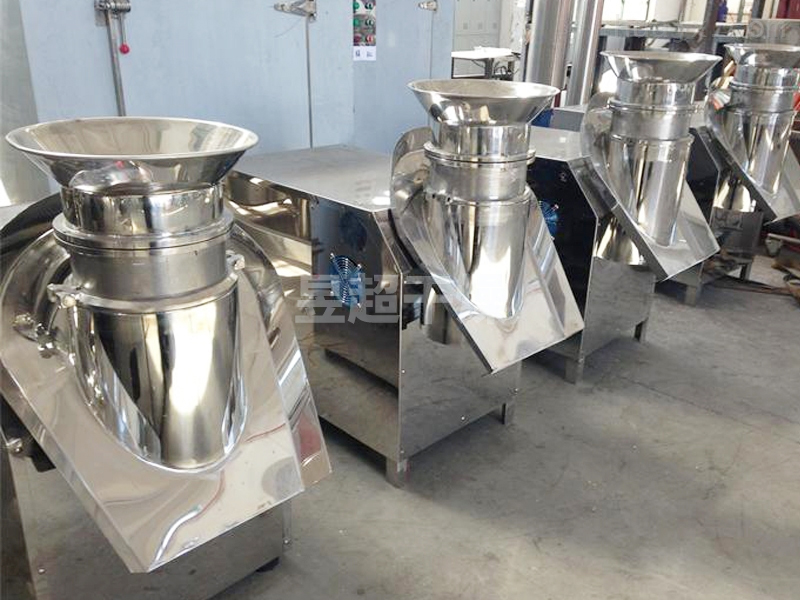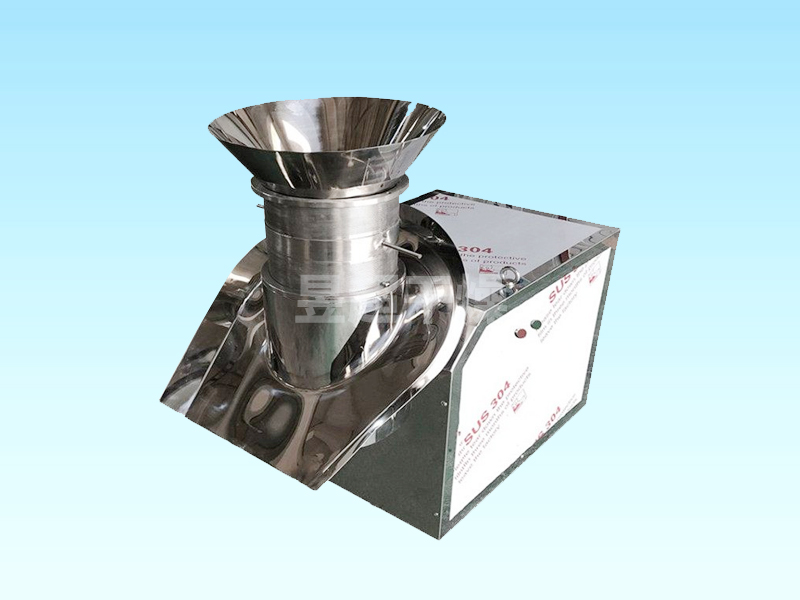 本机凡与物料接触部分均采用不锈钢制作,外形美观,结构合理,制粒成型率高,颗粒美观,自动出料,避免人工出料造成的颗粒破损,并适合流水作业。