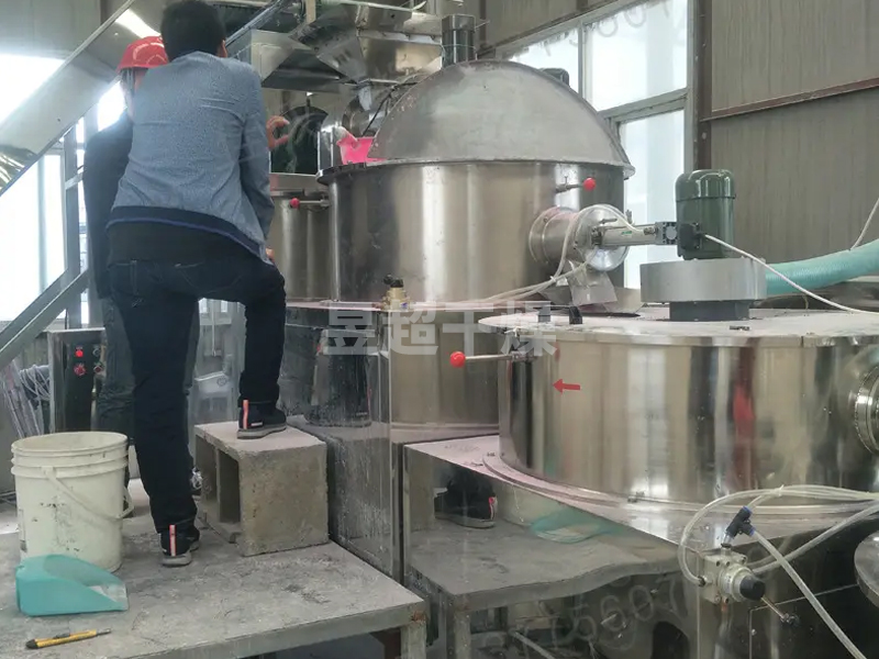 本机是通过设置旋转离心盘、鼓风机、气动喷枪,将湿颗粒制成美丽的球丸。将前道工序做成的湿颗粒投入旋转离心盘内,启动鼓风机后再将旋转离心盘启动,使湿颗粒受到环隙空气浮力、旋转离心力、自身重力作用,呈环周绳股状运动,从而形成真球度极高的球丸。